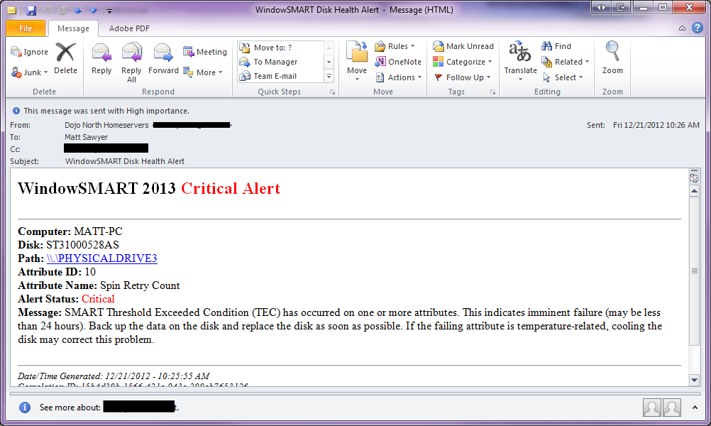 If you have an email account, you can receive disk health alerts in your inbox! WindowSMART sends you a daily summary too, even if all is well.