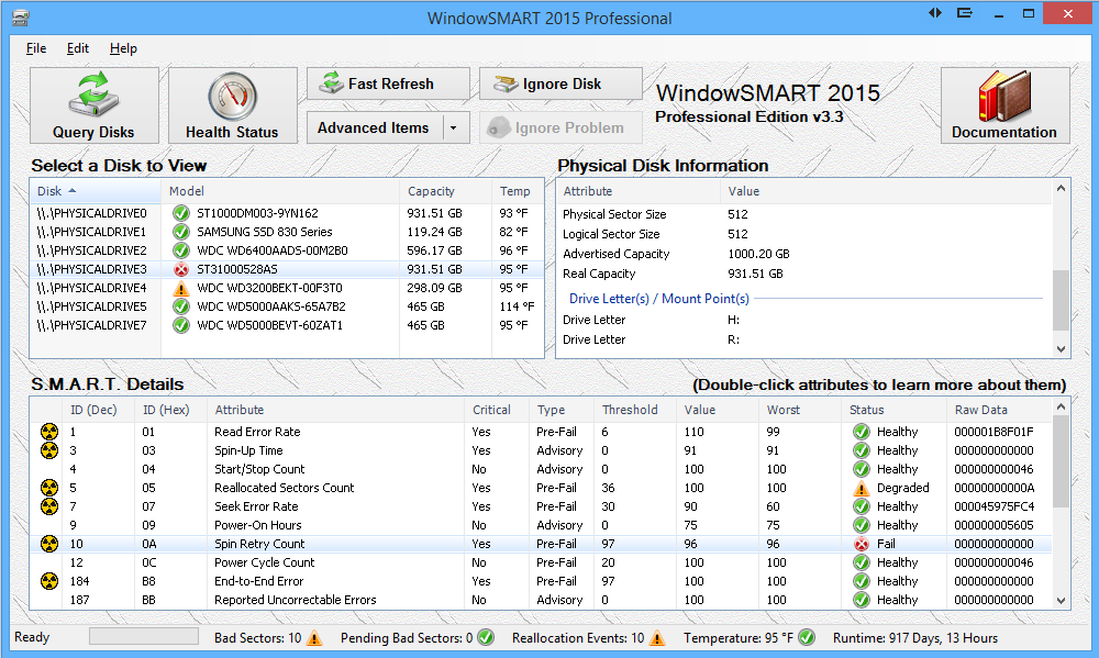 While it is impossible to prevent disk failures, WindowSMART 2015 keeps your data safe by always keeping you aware of disk health problems and backing up your data if a serious problem arises.