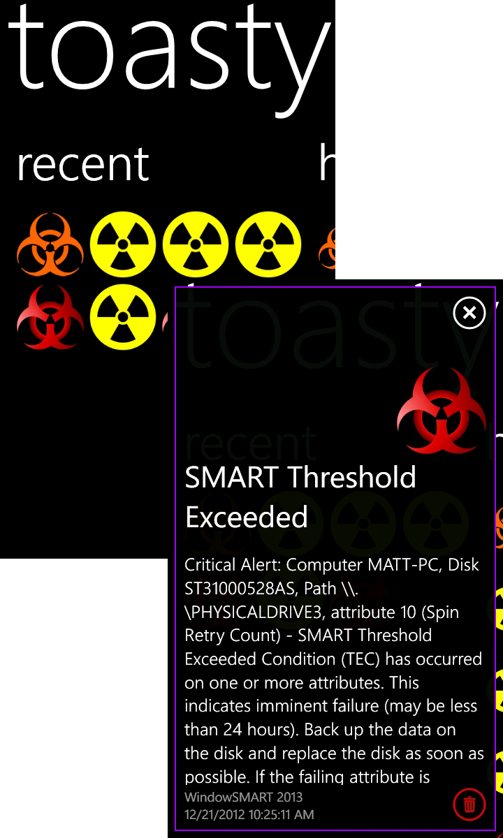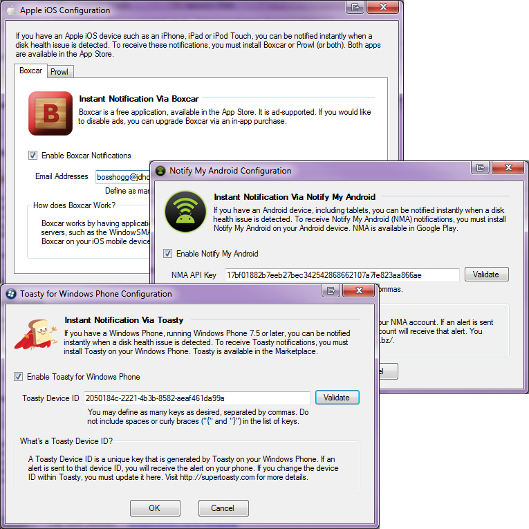 If you have an iPhone, iPad, Android phone or tablet or Windows phone, you can have instant disk health alerts delivered to your mobile device.